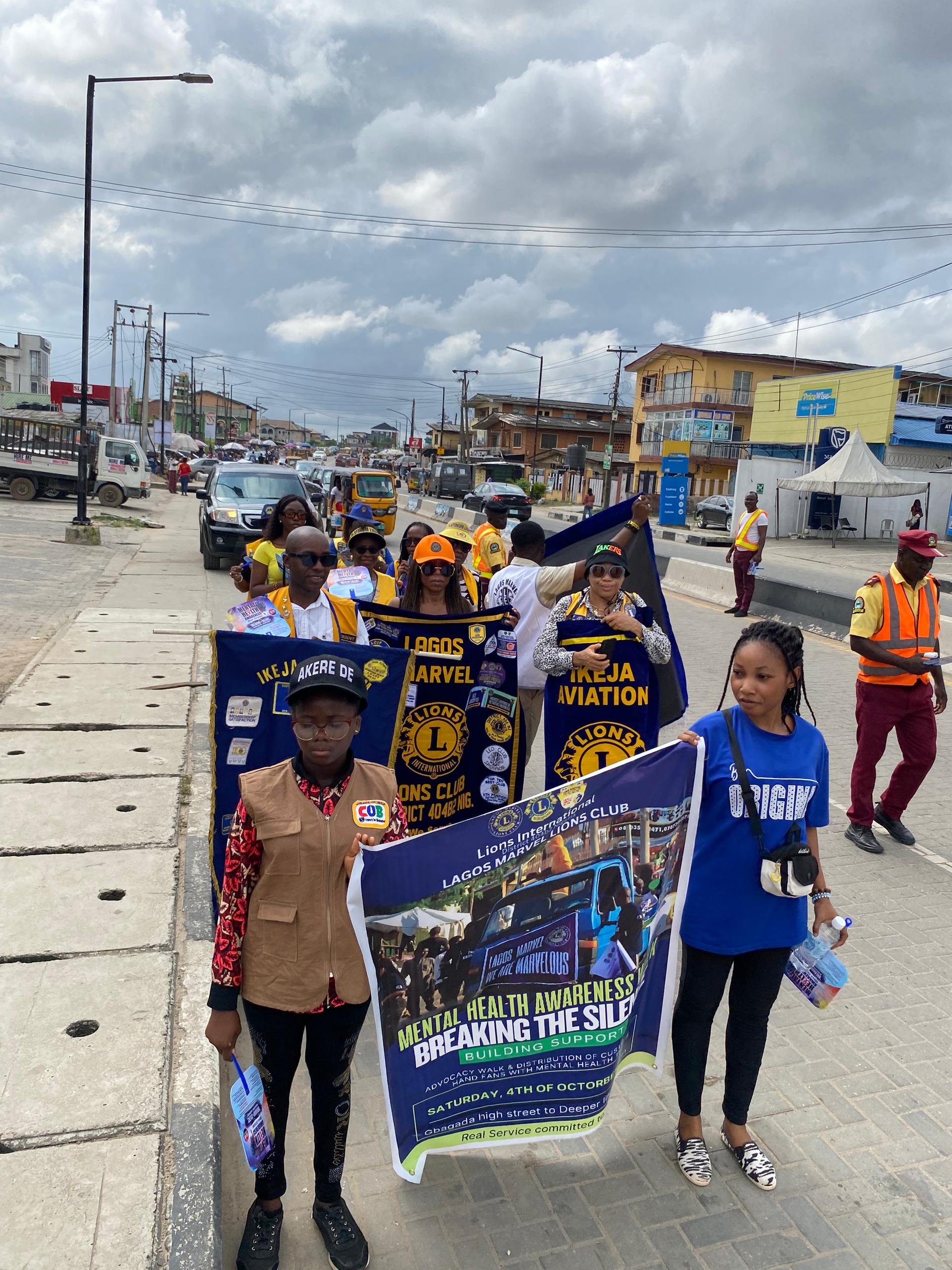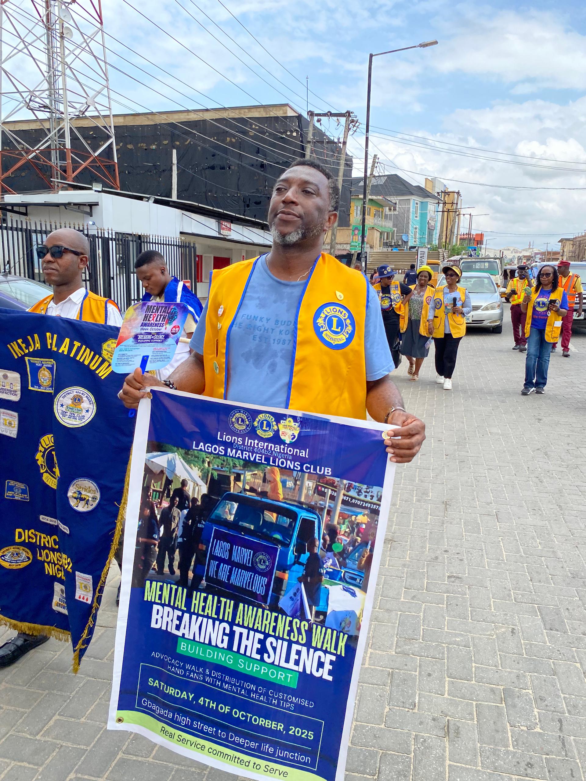 As part of activities marking Mental Health Awareness Week 2025, members of the Lagos Marvel Lions Club, in collaboration with Ikeja Aviation Lions Club, Ikeja Platinum Lions Club, and Ilupeju Diamond Lions Club, organized a highly impactful community advocacy walk in Gbagada, Lagos, on Saturday, October 4, 2025.