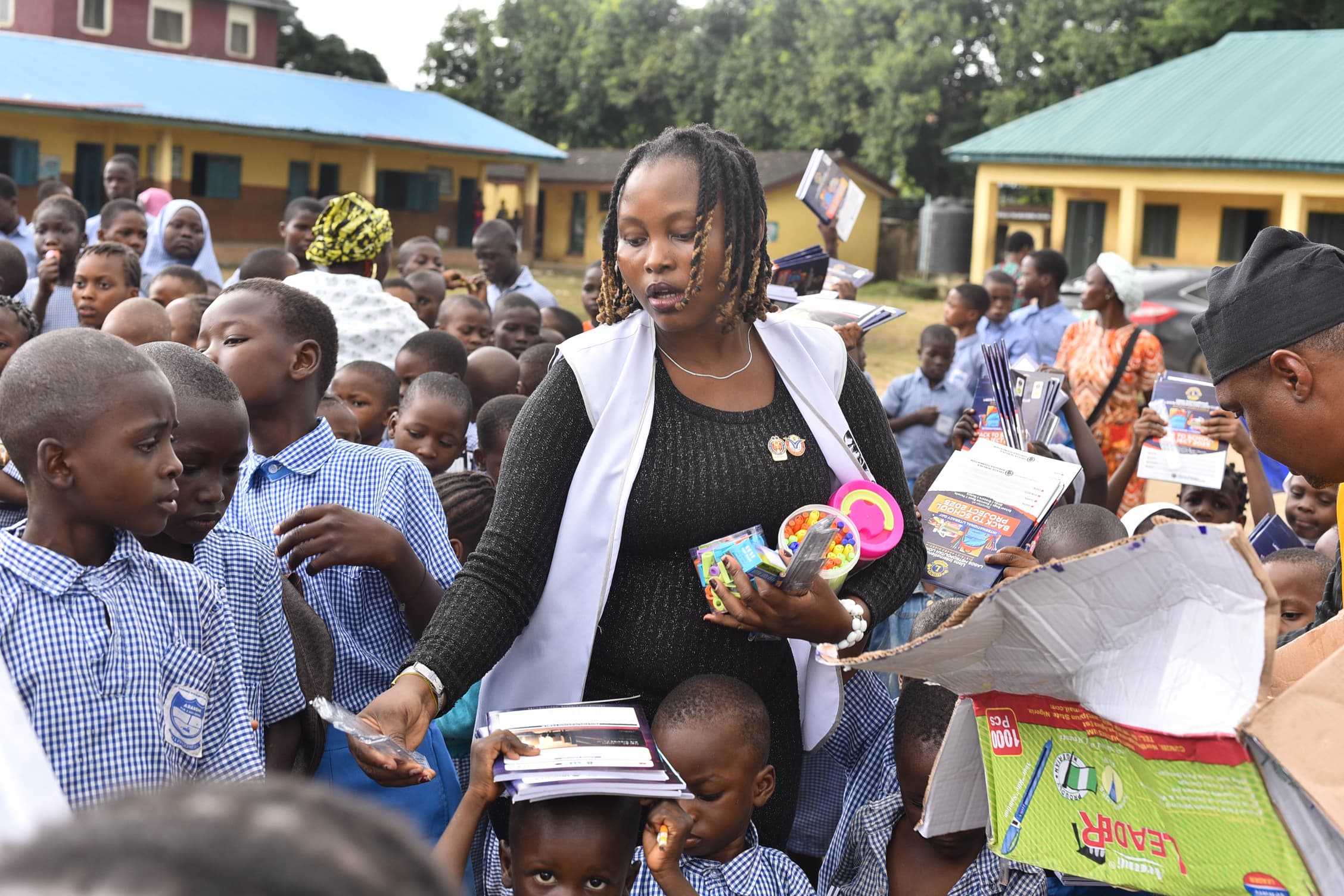 As part of the intervention, the Club distributed a wide range of educational materials, including 150 leather school bags, 3,000 units of 60-leaf exercise books, 3,000 pencils, 3,000 biros, 2,000 rulers, and 2,000 erasers. Each beneficiary received a complete learning kit, ensuring that the children were well-equipped to participate fully in their academic activities.